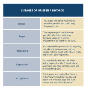 Elisabeth Kübler–Ross (July 8, 1926 – August 24, 2004) was a Swiss-American psychiatrist, a pioneer in near-death studies and the author of the groundbreaking book On Death and Dying (1969), where she first discussed her theory of the five stages of grief, also known as the “Kübler–Ross model.” The model can be applicable to any serious loss, such as divorce. For more, read here.